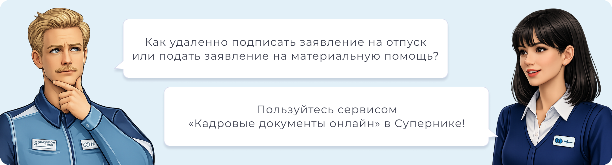 Если у вас возникли сложности в работе сервиса Кадровые документы онлайн, напишите в чат "Техническая поддержка" в мессенджере Суперники. Коллеги зарегистрируют запрос и окажут помощь в короткие сроки.